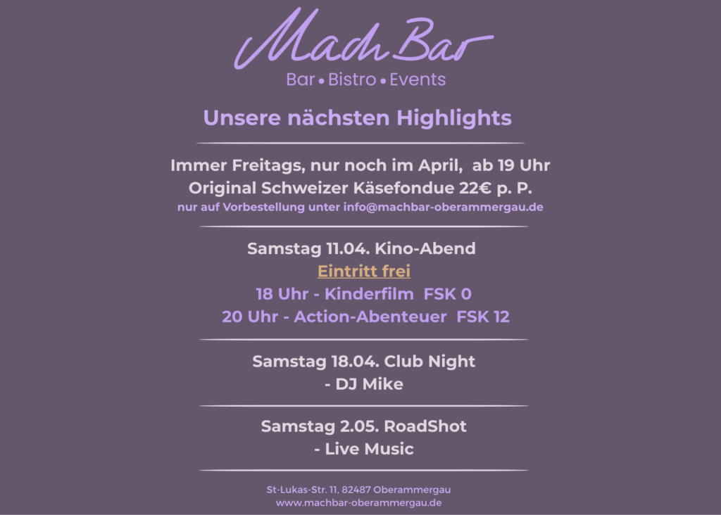 In der MachBar Oberammergau verbinden wir das Beste aus zwei Welten – entspannte Baratmosphäre und professionelle Eventmöglichkeiten.