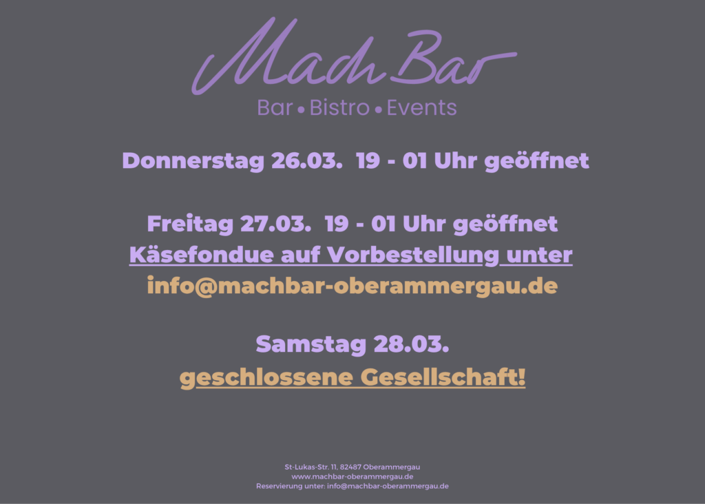 auf Vorbestellung unter der Email: info@machbar-oberammergau.de