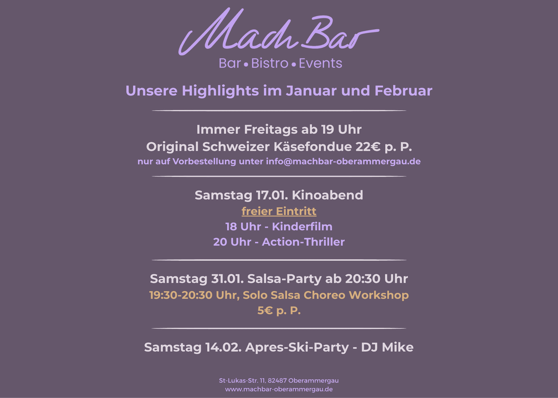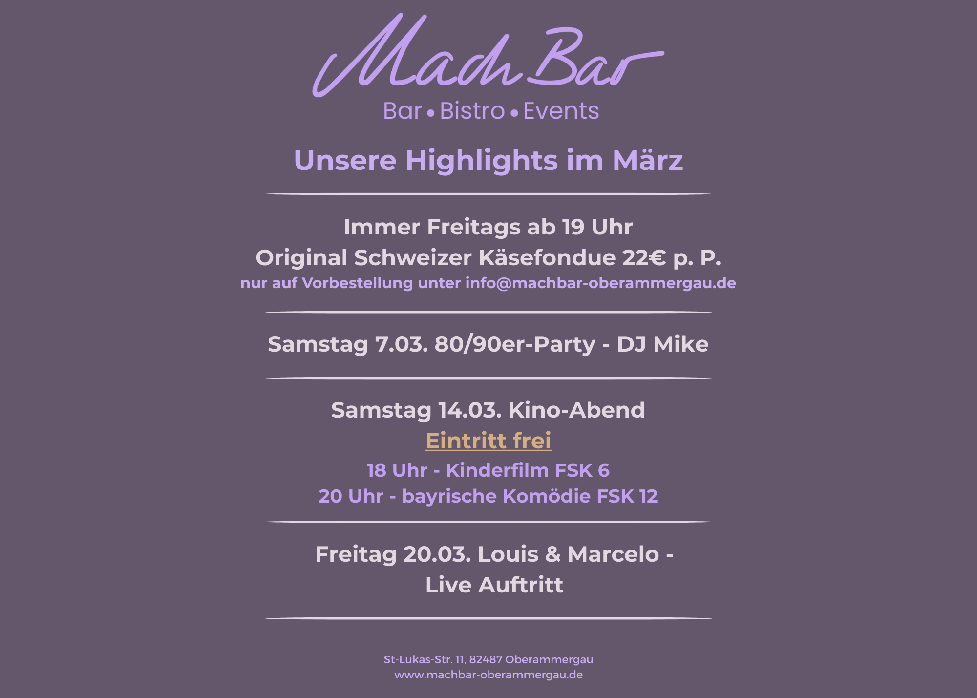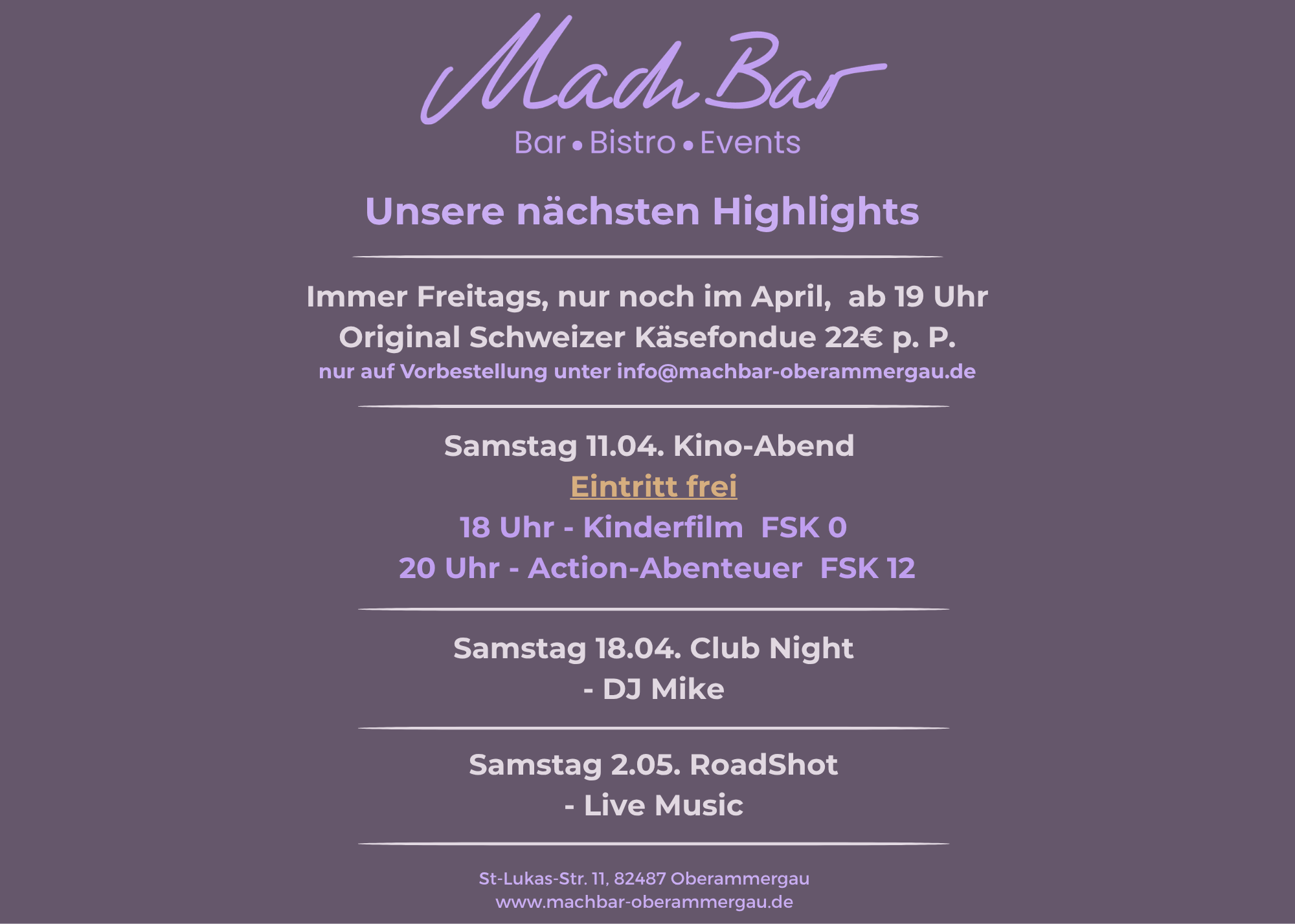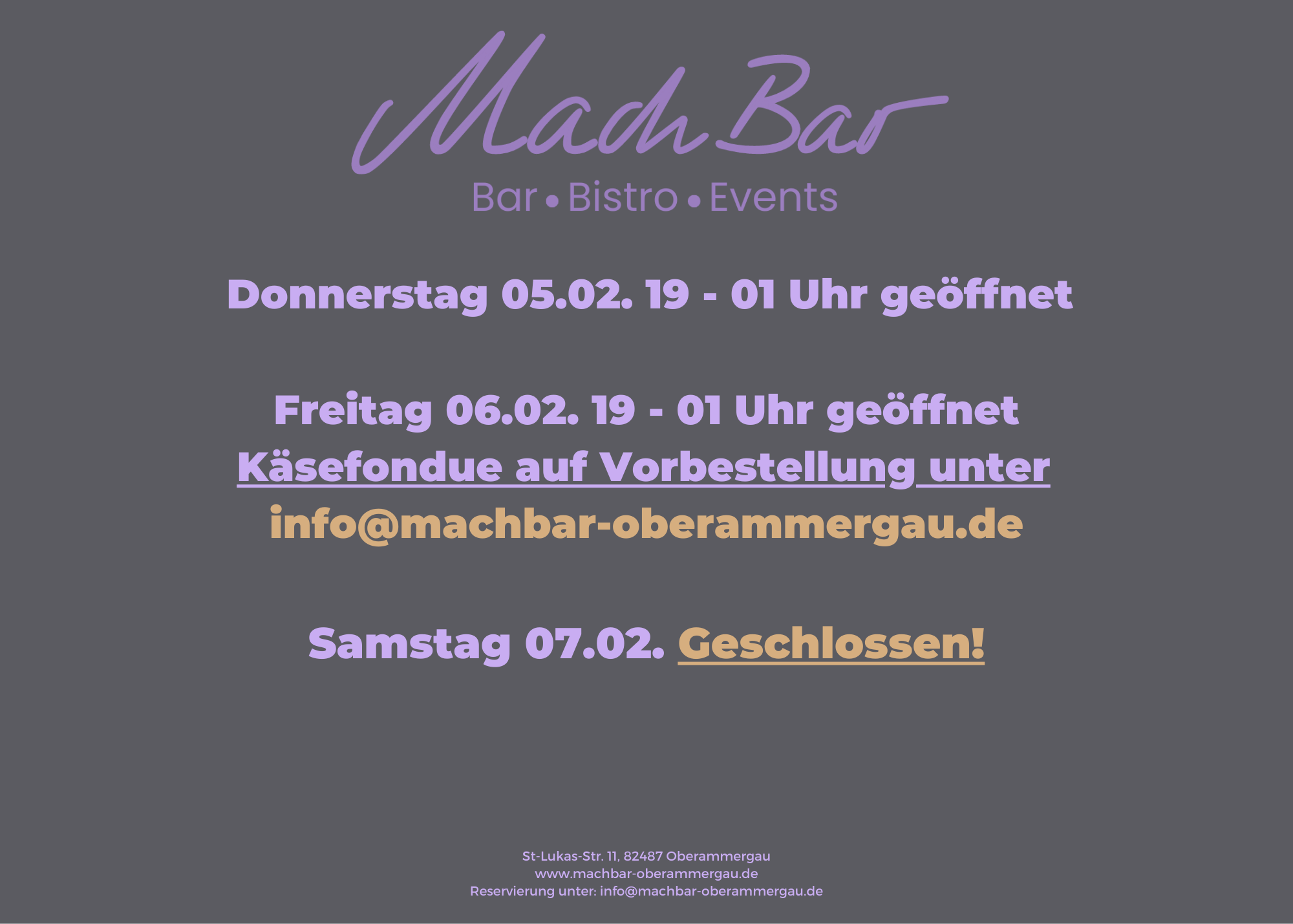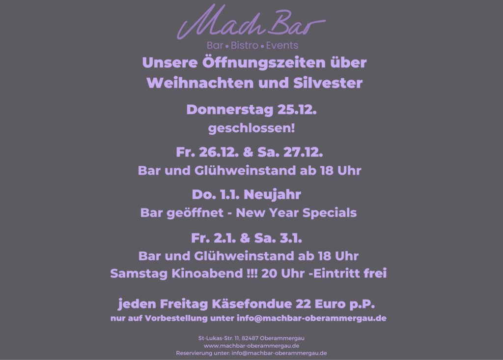auf Vorbestellung unter der Email: info@machbar-oberammergau.de