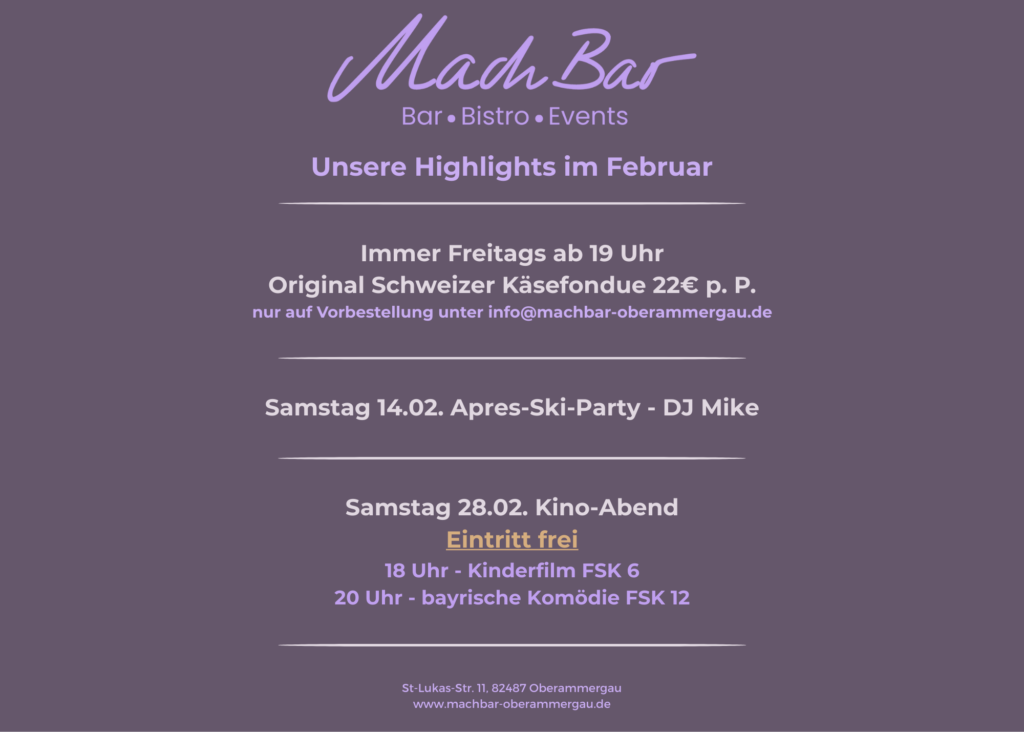 In der MachBar Oberammergau verbinden wir das Beste aus zwei Welten – entspannte Baratmosphäre und professionelle Eventmöglichkeiten.