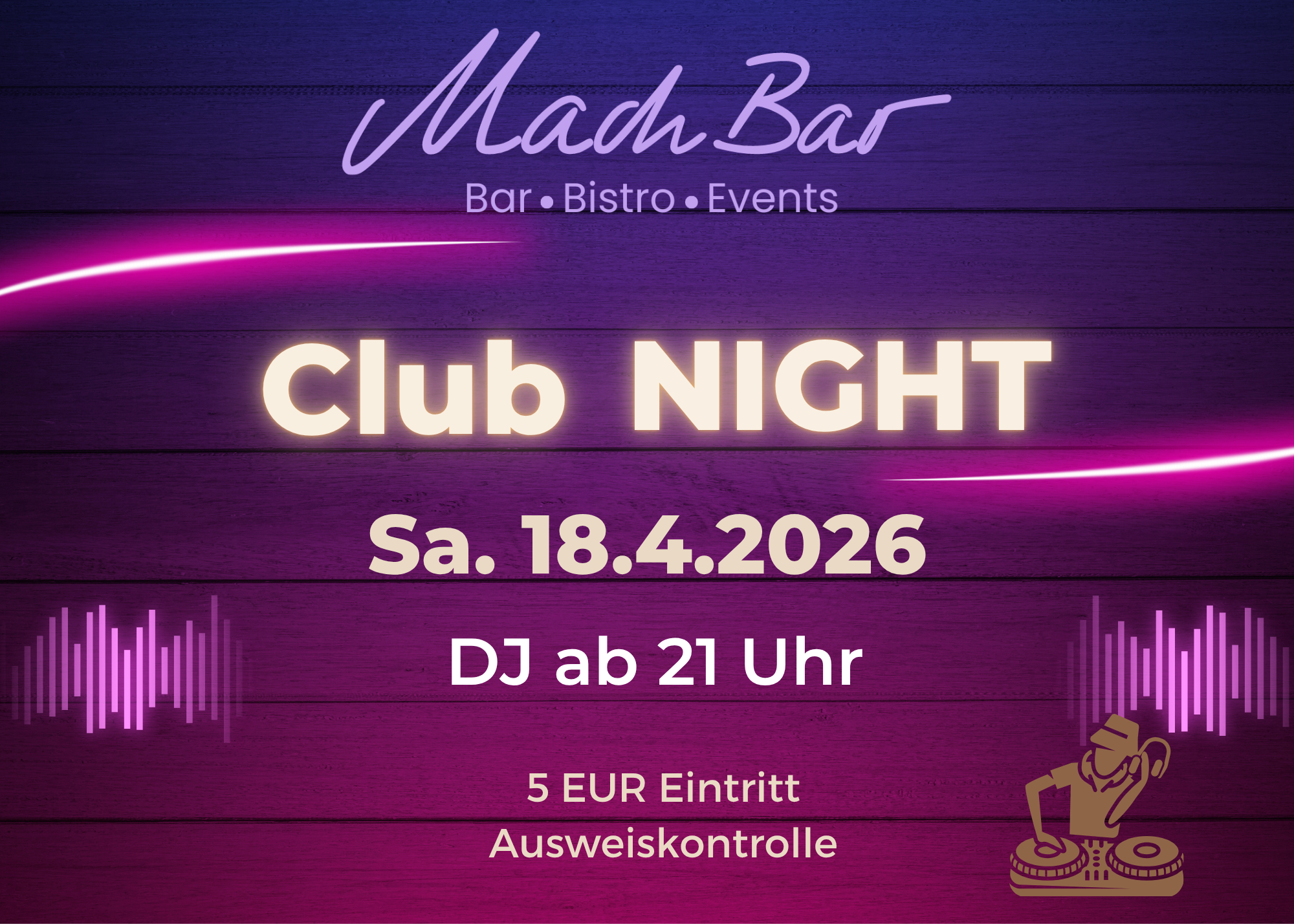 Do. bis Sa. von 19:00 – 01:00 Uhr / Küche bis 22:00 Uhr